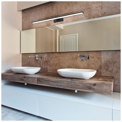 Collezione pandella 1 la lampada che arreda con sobrietà la lampada a specchio a led pandella 1 è realizzata in alluminio nero e plastica.. Questa lampada ha una protezione anti-spruzzo (ip44) che le consente di essere utilizzata in bagno. Il led integrato emana una luce bianca calda ed è coperto da una superficie in plastica bianca. Questa lampada si armonizza perfettamente con arredamenti m...
