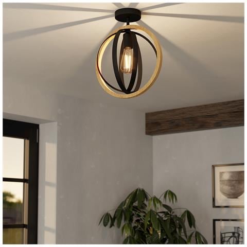 Collezione basildon la lampada dal design loft la plafoniera basildon è costituita da un elemento rotondo in legno chiaro e metallo nero. All'interno, gli elementi rotondi inseriti l'uno nell'altro creano affascinanti giochi di luci e ombre nell'ambiente. La lampadina a filamento non è inclusa nella confezione. Per la lampada è adatta qualsiasi lampadina con attacco e27. .