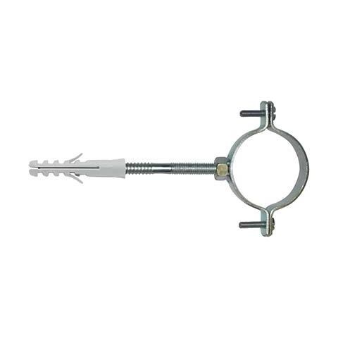 Sistema di fissaggio per linstallazione di condutture per impianti idrici, sanitari e di trasporto fluido. Applicabile su calcestruzzo, mattoni pieni e forati. Collare in acciaio zincato. Completo di vite di congiunzione speciale vdf, misura m8, in acciaio zincato e tassello in nylon. Foro mm. 10.