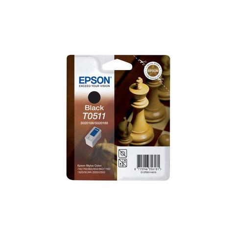 Cartuccia Originale C13T05114010, Codice T0511. Colore Consumabile Nero, Alta Resa, Tecnologia di Stampa a getto a d'inchiostro, Prodotti Compatibili : Epson Stylus Color 1160 / 1520 / 1520 C / 740 / 760 / 800 / 800 C / 850 / 860 / 740 I / 800 N / 850 N / 850 NE / 810 / 760 TB / 850 Series / 740 Series / 760 Series / 1500 Series / 800 Series / Stylus Scan 2000 / 2500 / Capacità 900 Pagine.