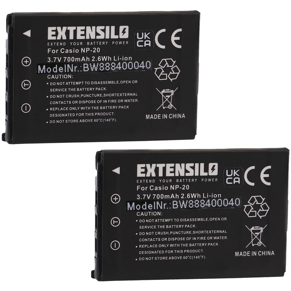2x Batteria Compatibile Con Casio Exilim Ex-s1pm, Ex-s2, Ex-s20, Ex-s23, Ex-s3 Fotocamera Digitale Dslr (700mah, 3,7v, Li-ion)