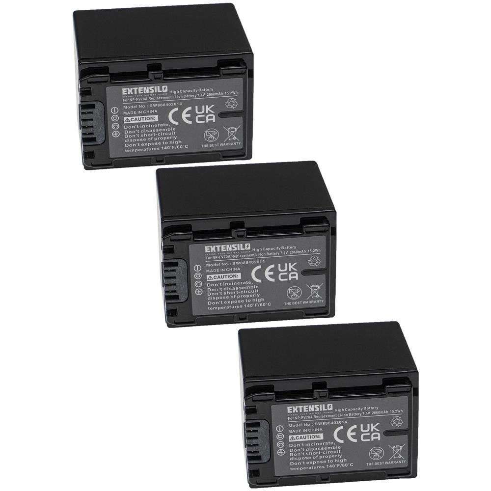 3x Batteria Sostituisce Sony Np-fv70, Np-fv90, Np-fv60, Np-fv70a Per Fotocamera Digitale Dslr (2060mah, 7,4v, Li-ion)
