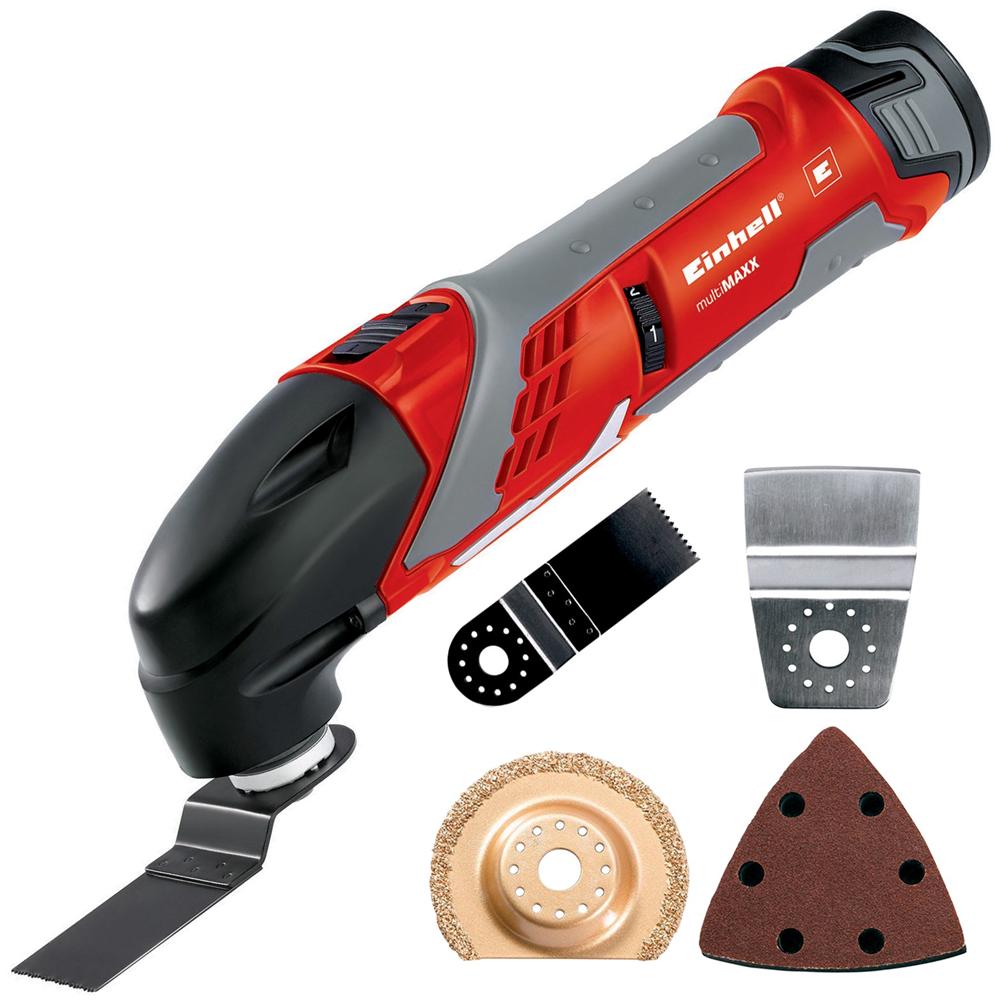 Raschietto multifunzione RT-MG 10,8 Li. Dotato di impugnatura antiscivolo, regolazione elettronica dei giri, attacco per utensili. Accessori in dotazione: doppia batteria Litio, caricabatteria, spatola per legno, raschietto, carta abrasiva triangolare, n. 6 fogli abrasivi (3 x legno / 3 x ferro) , disco troncatore segmentato HM per le fughe delle piastrelle, chiave a brugola e la pratica valige...