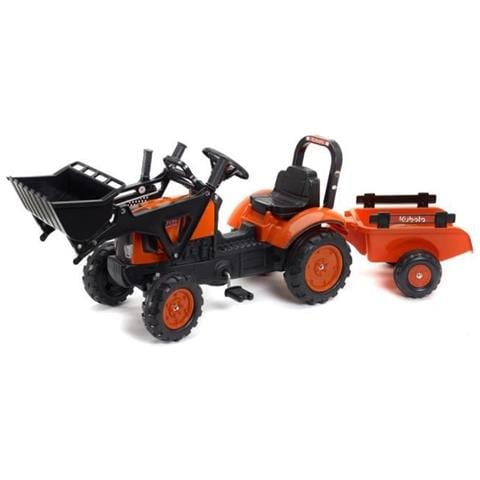 Terne kubota m7171 con rimorchio - dotato di un volante con clacson - pedali modello true replica - dotato di un arco - giocoso grazie alla sua pala anteriore articolata - rimorchio con credenze - in grado di resistere a piccoli combattenti - da 2 anni - fornito singolarmente.