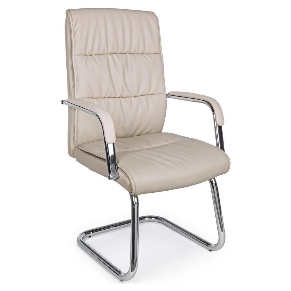 Poltrona in stile slitta, struttura in acciaio cromato. Seduta e schienale imbottiti e rivestiti in ecopelle e braccioli in acciaio cromato rivestiti in ecopelle. Da assemblare. Misure: 58x60,5x101,5h - 46h1 - 65h2 cm.