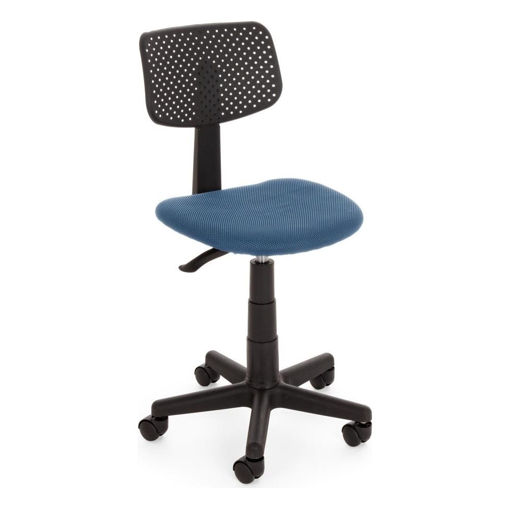 Poltroncina da ufficio. Base in plastica ø48 cm, ruote in nylon, seduta imbottita in schiuma e rivestita in tessuto poliestere a rete. Schienale in plastica e altezza regolabile. Da assemblare. Misure: 40x45x72,5/84h - 39,5/50,5h1 cm.