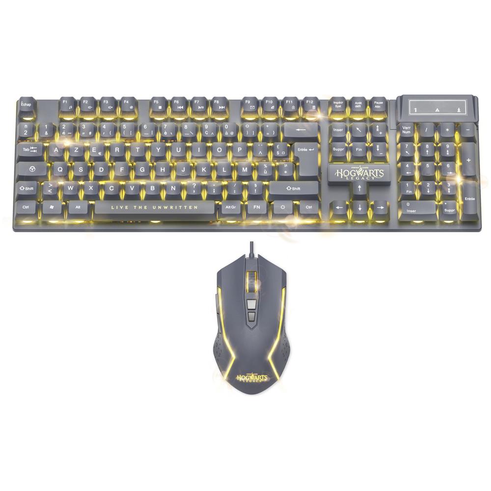 Tastiera Gaming USB Meccanica Hogwarts Legacy Retroilluminata Colore Nero (Layout Francese AZERTY)+ Mouse Gaming Ottico 7 Tasti 8000 DPI Colore Nero