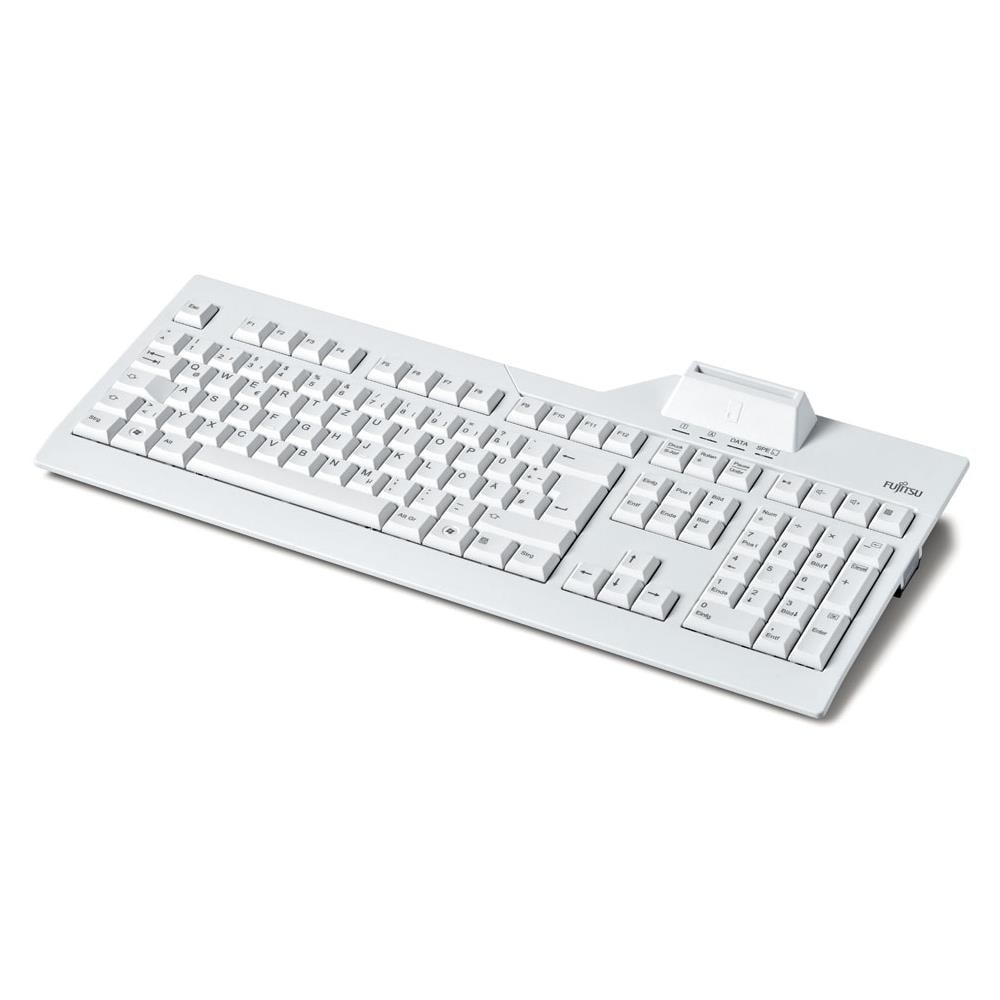 Fujitsu KB SCR eSIG. Interfaccia dispositivo: USB. Colore del prodotto: Bianco, Certificazione: TÜV GS, CE, FCC, RoHS, WEEE. Lunghezza cavo: 1,8 m. Consumo: 100 mA. Dimensioni tastiera (WxDxH) : 460 x 203 x 51 mm, Peso della tastiera: 780 g
