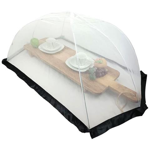 Realizzato in nylon e metallo. Facile da piegare per una migliore conservazione. Perfetto per proteggere il cibo da animali domestici e insetti. Colore bianco /nero.. Cm 116 x h. 65. inteso per : 1 pz.