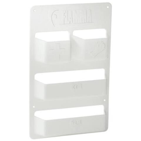 Comodo modulo di quattro tasche portaoggetti individuali.si fissa con le viti di serie all'interno della porta del kassett thetford o dometic del veicolo.ideale per riporre sacchetti di super kem sachets in polvere, guanti igienici usa e getta, liquido igienizzante e materiale vario di pulizia.realizzato in plastica resistente agli uv.dimensioni : 28 x 18 x 3,6 cm...