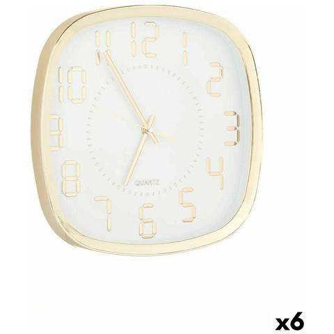Orologio Da Parete Quadrato Dorato Vetro Plastica 31 X 31 X 4,5 Cm (6 Unità)