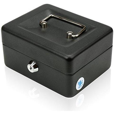 H S Money Box Tin 6 Acciaio Cash Cassaforte Petty Tin Cash Con La Serratura 2 Chiavi - Nero