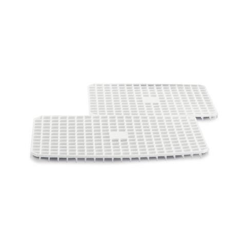 Salvapiatti in plastica bianca neutra, antiscivolo, ipoallergenico e realizzato con materiali conformi alle leggi vigenti nel rispetto dell ambiente e dei lavoratori.