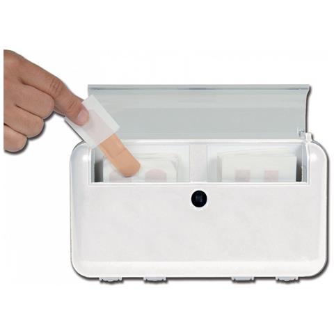 Dispenser per cerotti adesivi pronto all-uso. permette all-operatore di estrarre ed applicare il cerotto sulla parte ferita con una sola mano. la copertura trasparente protegge dalla polvere e rende visibili i cerotti rimanenti. Chiusura con chiave. kit di fissaggio al muro incluso. misure: 230 x 120 x 38 mm - ean13: 8023279348262dotazione: unità di vendita: 1 pz. . . .