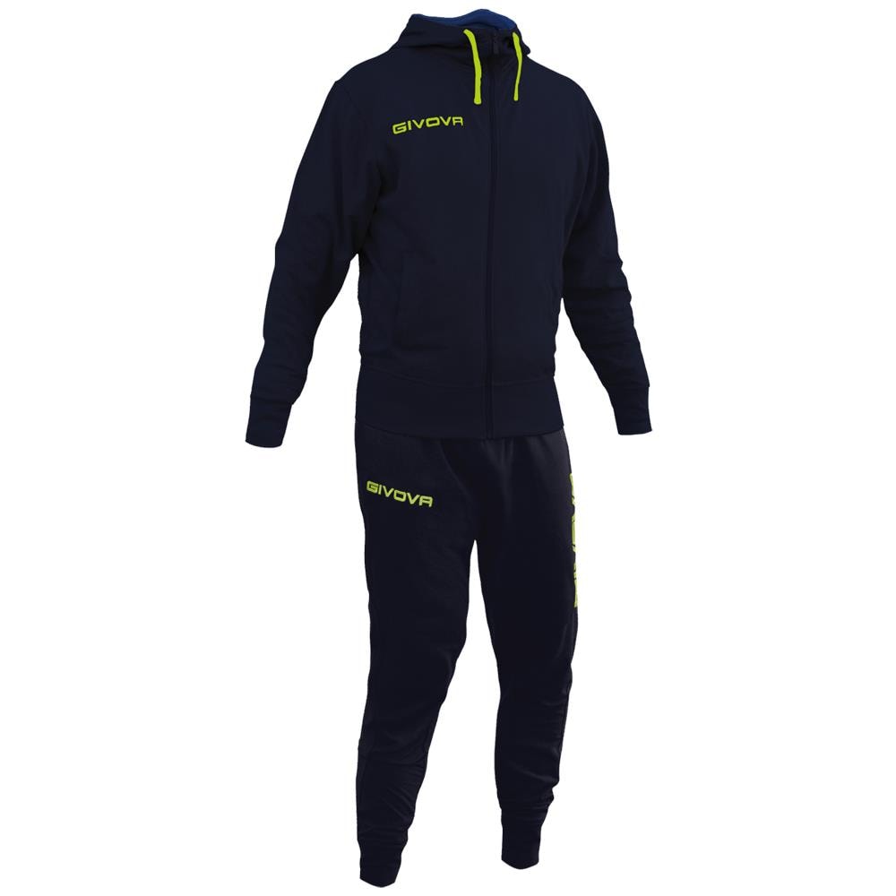 Tuta Poker Givova Completo Di Giacca Con Zip Manica Lunga E Pantalone Colore Blu / giallo Fluo Taglia L