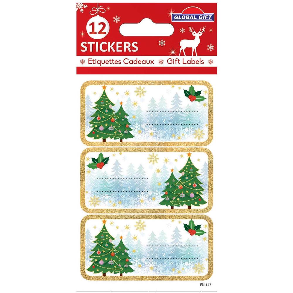12 Adesivi Natalizi - Alberi Glitterati Oro