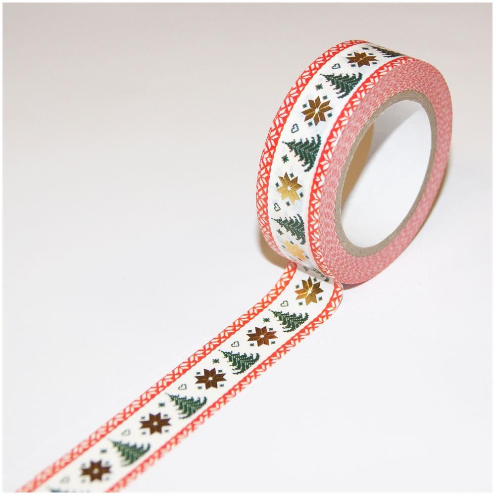 Nastro Adesivo Natalizio - Alberi Di Natale E Fiocchi Di Neve Dorati