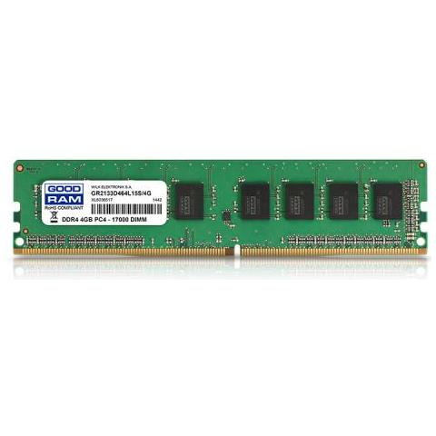Goodram GR2400D464L17S / 4G. Componente per: PC / server, RAM installata: 4 GB, Layout di memoria (moduli x dimensione) : 1 x 4 GB, Tipo di RAM: DDR4, Velocità memoria: 2400 MHz, Fattore di forma memoria: 288-pin DIMM, Latenza CAS: 17