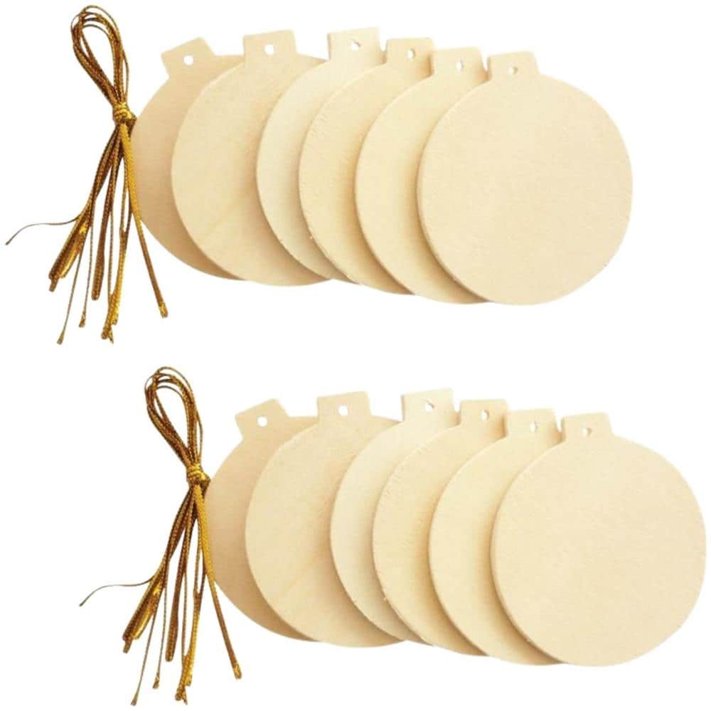 Queste 12 tavolette natalizie a forma di pallina serviranno per decorare l'albero o i mobili per le feste di natale, a meno che non preferiate utilizzarle come etichette regalo. Il loro diametro di 6 cm fornisce una bella superficie da decorare (pirografia, vernice, nastro adesivo o glitter) o per annotare il nome o il messaggio sul regalo.