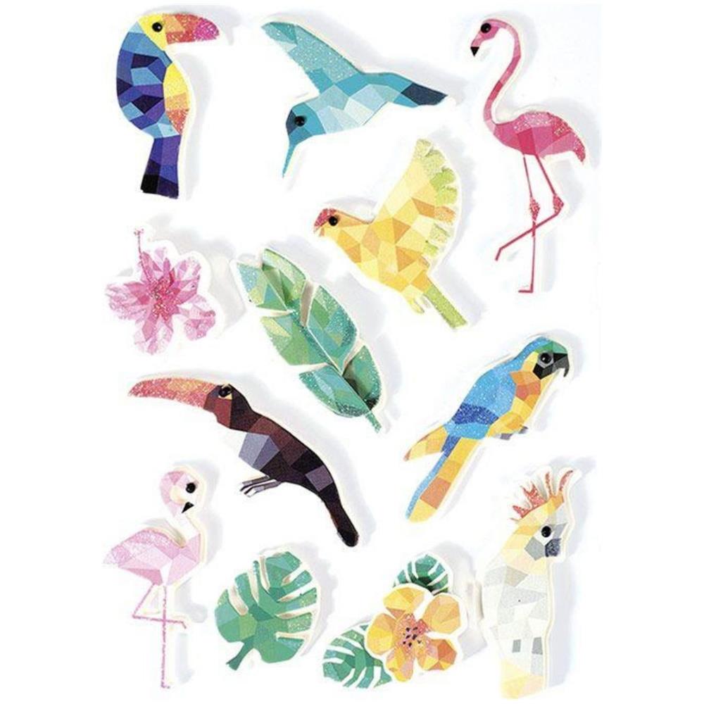 24 Adesivi 3d Uccelli Tropicali 6 Cm