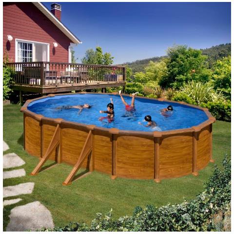 Piscina Ovale In Acciaio Effetto Legno Mauritius 500 X 300 X 132 Cm