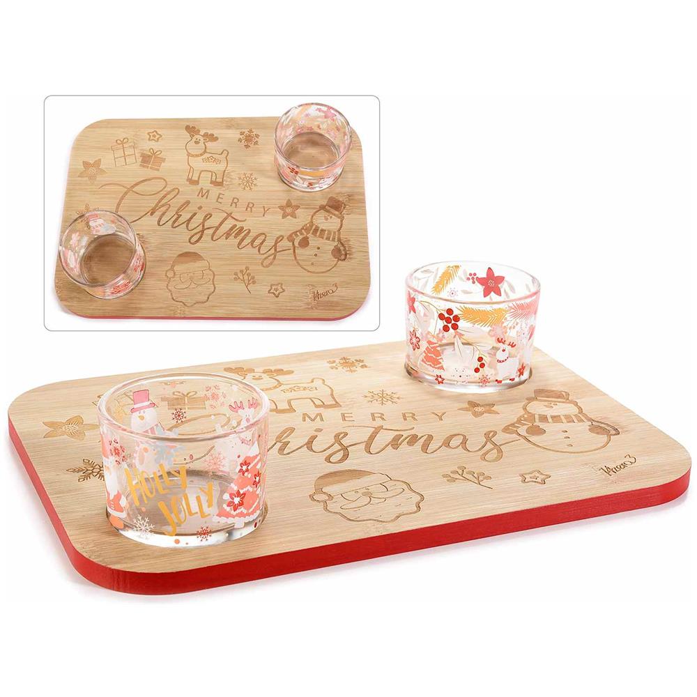Piatti Natalizi Per Aperitivi E Antipasti Set Da 2 Vassoi In Legno Con Ciotole In Vetro Decorazione Natalizia Per La Tavola