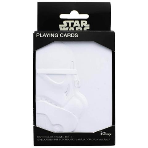 Carte da gioco star wars di casa paladone con licenza ufficiale disney: star wars edizione black and white con box in metallo. Il set contiene il contenitore in metallo con bassorilievo di un casco stoormtrooper e 52 carte da gioco stilizzate (colore nero su bianco e viceversa. Perfetta idea regalo per appassionati della saga spaziale più famosa della storia.