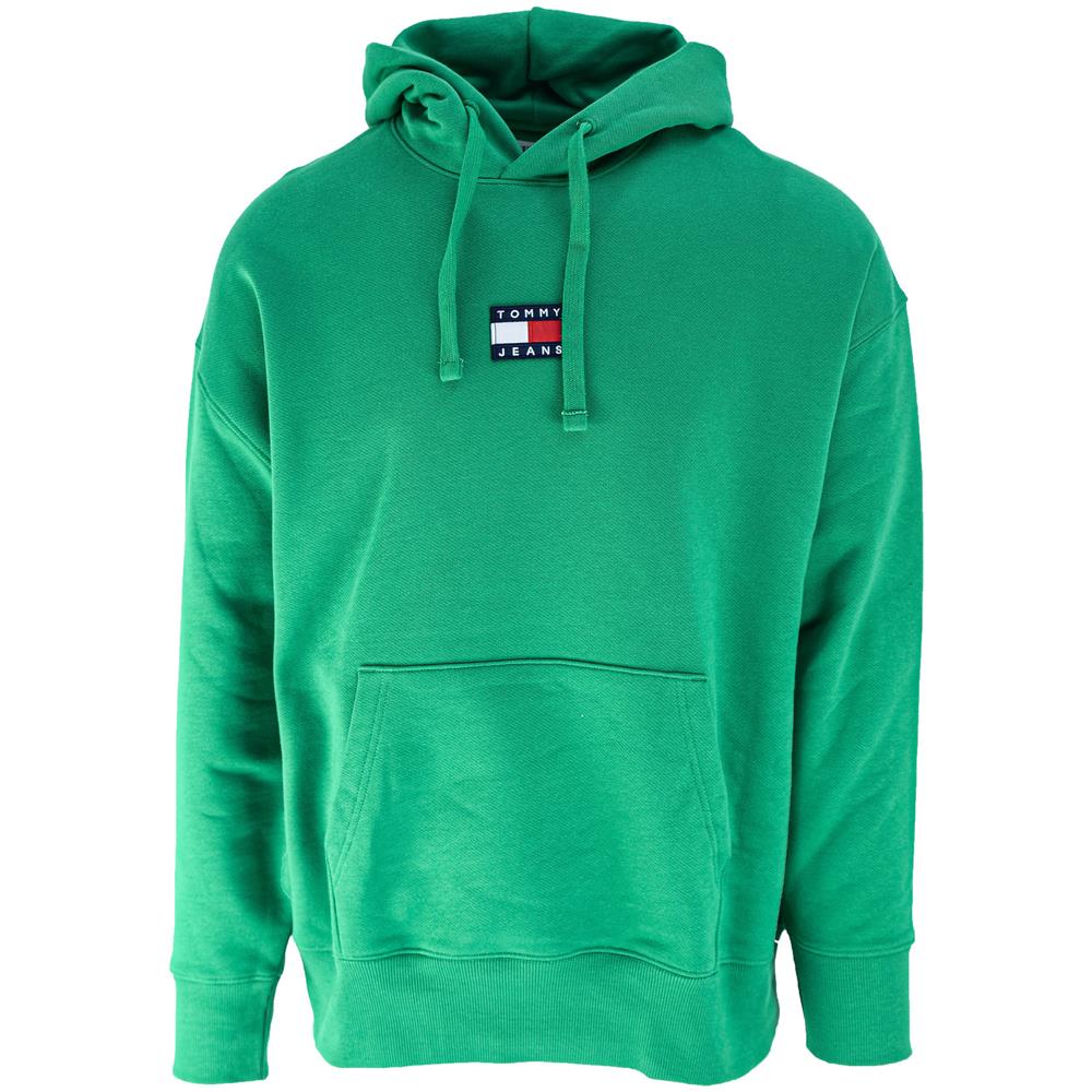 Materiale: cotone colore verde vestibilitã : ampia manica: manica lunga con cappuccio tasche: tipo canguro orlo: elastico polsino: elastico logo: tommy jeans.