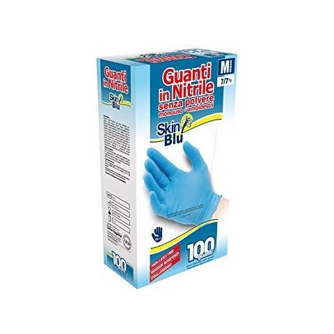 Skin blue 100pz guanti nitrile senza polvere monouso non sterili ambidestri, taglie disponibili m