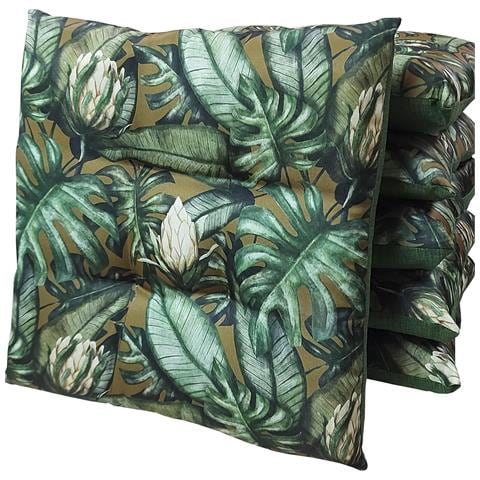 6 Cuscini Sedie Cucina, Coprisedia Cucina, Cuscini Per Sedie Quadrati, Trapuntati Al Centro, Cuscino Sedia Con Laccetti, Made In Italy (forest)