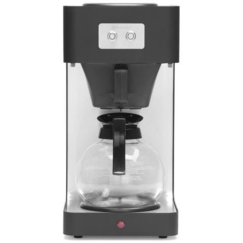 Prepara una brocca di caffè in circa 6 minuti. struttura nera di design fabbricata in polipropilene ricoperta di gomma nera. con una caraffa di vetro da 1,8 lt, supporto del filtro in polipropilene e coperchio. con 2 basi di riscaldamento azionate separatamente. con spia che indica quando il caffè è pronto. adatta a filtri: 110/250.