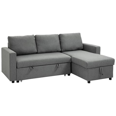 Divano Letto 3 Posti E Penisola Con Contenitore, Rivestimento Tessuto Effetto Lino, 211.5x146x85cm