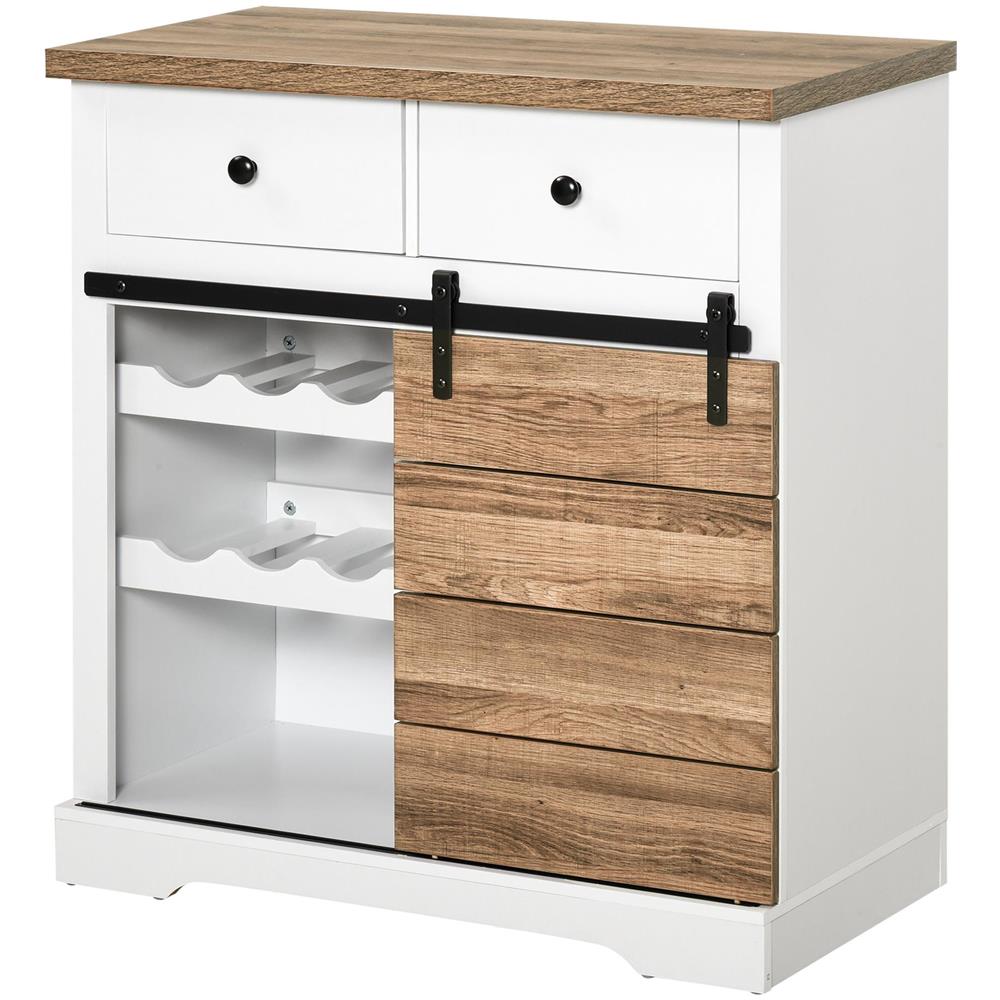 Rinnova il tuo spazio e fai ordine con la nostra credenza buffet HOMCOM, un mix di fascino rustico ed elegante funzionalit?. Il suo design con ante scorrevoli, impreziosito da un'elegante ferramenta nera, conferisce un tocco rustico a qualsiasi ambiente. Il mobile da cucina ? costituito da un portabottiglie per vini da 6 bottiglie, dei ripiani e 2 cassetti. La struttura si adatta perfettamente ...