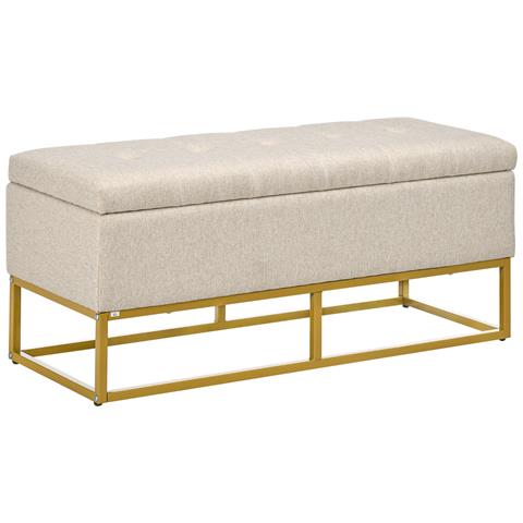 Panca Con Contenitore In Poliestere Trapuntata Con Gambe In Acciaio D'oro, 110x44x48cm, Beige