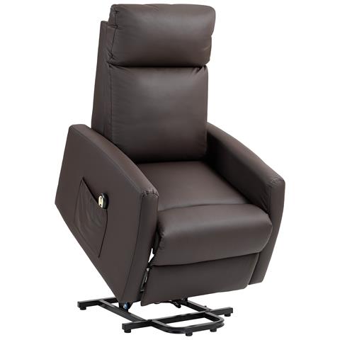 Poltrona Alzapersona Reclinabile a 145° con Telecomando e Poggiapiedi, in Pelle PU Marrone Scuro, 67x95x105 cm