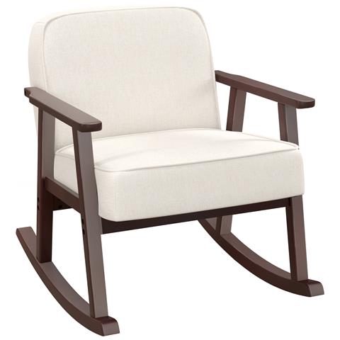 Poltrona a Dondolo in Tessuto Effetto Lino e Legno con Braccioli e Cuscini, 66x78x76 cm, Beige e Marrone