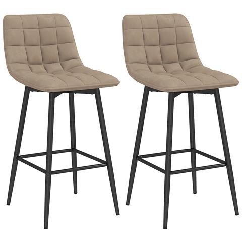 Porta un tocco di novità nei tuoi spazi domestici con questo set di sgabelli imbottiti HOMCOM, l'ideale per ravvivare ogni ambiente. Il look semplice e lo stile nordico li rende ideali da usare in soggiorno e in cucina, oppure come sgabelli da bar nella tua attività. Il tessuto effetto velluto e l'imbottitura in gommapiuma rendono la seduta confortevole, mentre lo schienale curvo e il poggiapie...