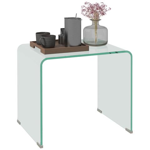 Tavolino in Vetro Temperato Moderno da Salotto con Design Monoblocco, 50x40x45 cm, Trasparente