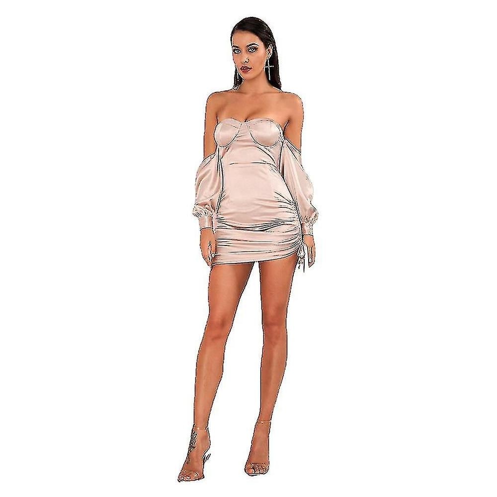 Donne Sexy Nude Fuori Dalla Spalla Tubo Top Mini Abito Da Festa Maniche Sciolte Bodycon