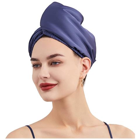 Berretto Asciuga Capelli In Finta Seta A Doppio Strato Navyblue