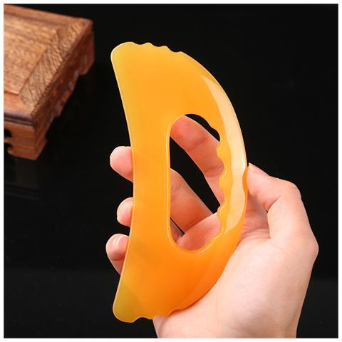 Materiale in resina naturale: realizzato in resina naturale di alta qualità, questo strumento gua sha offre una superficie liscia e fresca che scivola senza sforzo sulla tua pelle. Si ritiene che le proprietà naturali della resina favoriscano il rilassamento e il benessere. Applicazione versatile per il corpo: questo strumento gua sha a forma di luna è progettato per l'uso su varie parti del co...