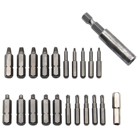 Qualità premium: è realizzato in acciaio legato ad alta velocità 4241 di qualità, altamente resistente e stabile, che garantisce che sia abbastanza resistente da rimuovere facilmente le viti danneggiate e rendere il lavoro più efficiente. Facile da usare: il set di estrattori per viti spelate è incluso con due supporti per punte di estensione, che lo rendono un kit convenientemente completo. Pu...