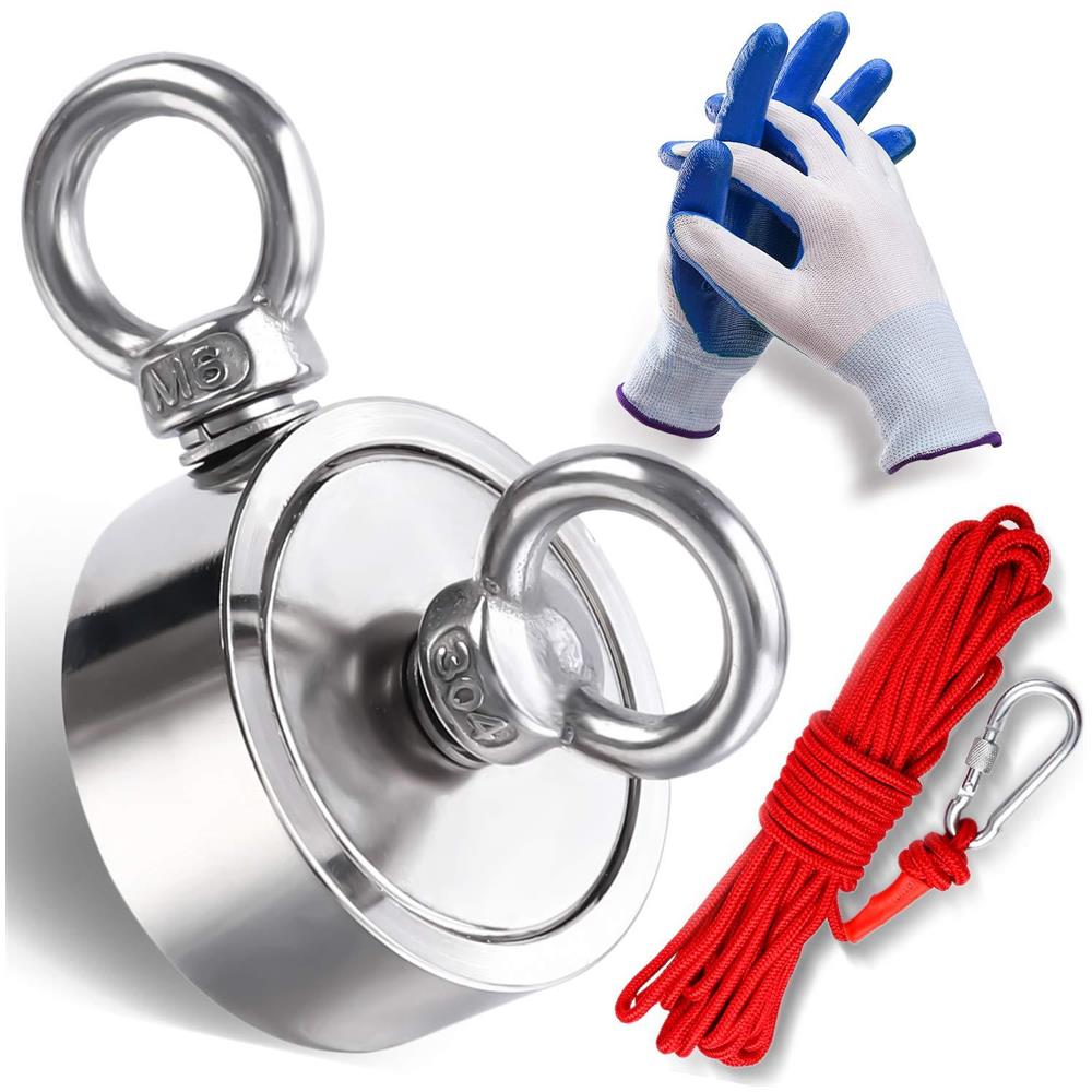 Magnete Al Neodimio A Doppia Faccia / Calamita Da Pesca 200 Kg Con Corda E Guanti
