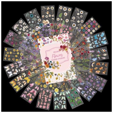 Set Adesivi Floreali Pz035 - 36 Fogli Di Adesivi In Pet