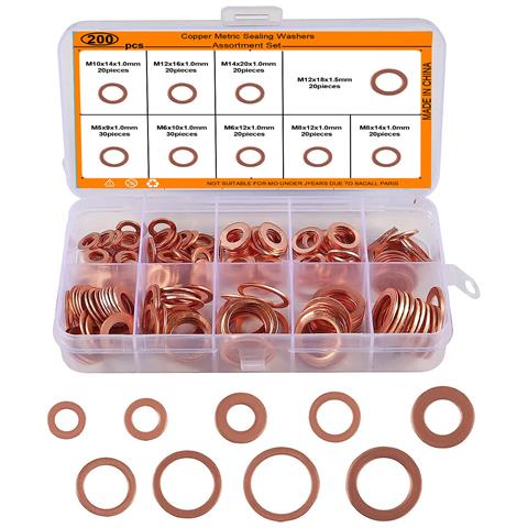 Set Di Rondelle Di Tenuta In Rame Da 200 Pezzi - Guarnizione Per Olio