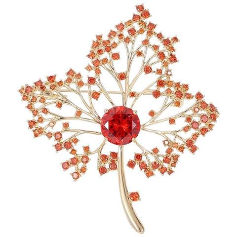 Squisita Spilla A Forma Di Acero Rosso Con Accento Di Cristallo Di Rubino