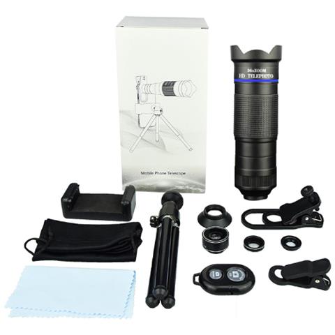 Teleobiettivo 36x Hd E Supporto Per Cellulare Black