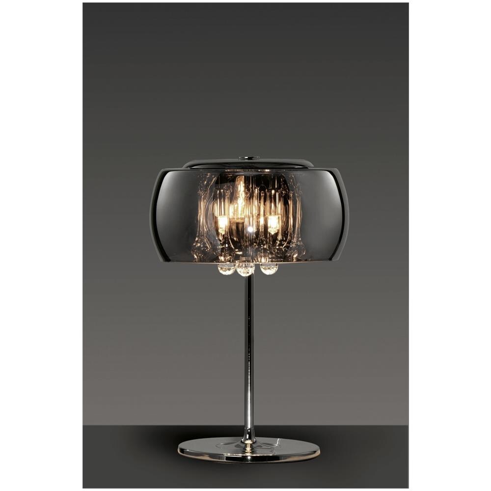Vapore Lampada Da Tavolo Vetro Cromo Con Pendagli Vetro Dimmerabile D. 28cm X H. 43cm