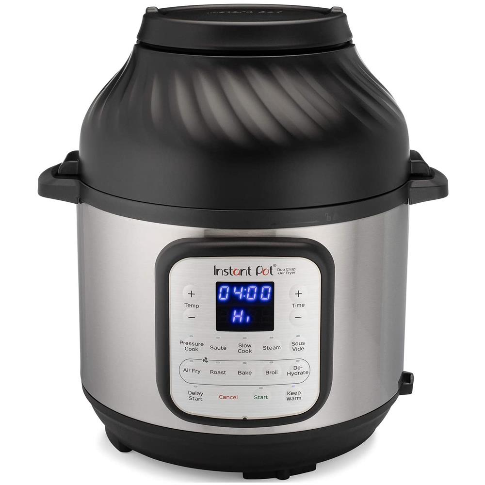 Instant Pot Duo Crisp & Air Fryer è il Multicooker che sostituisce 11 apparecchi in uno solo. Al modello Duo Crisp & Air Fryer si può sostituire il coperchio della pentola a pressione con l’innovativo coperchio della friggitrice ad aria, inoltre questo permette di accedere a tutta una serie completamente nuova di tecniche di cottura: tutte facili e veloci. Il Duo Crisp & Air Fryer è 11 apparecc...