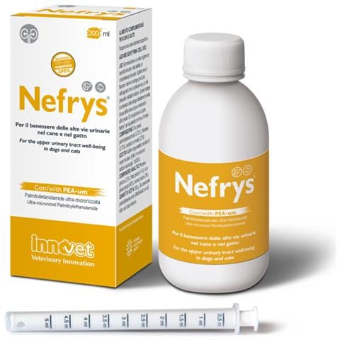 Nefrys innovet è un alimento complementare per cani e gatti che ha la funzione di protegge le alte vie urinarie del nostro amico a quatto zampe. Nefrys innovet può essere utilmente impiegato in cani e gatti di ogni età al fine di mantenere le normali funzioni delle alte vie urinarie. Grazie alle sostanze contenute nella sua formula esclusiva, svolge una fisiologica funzione nefroprotetti...